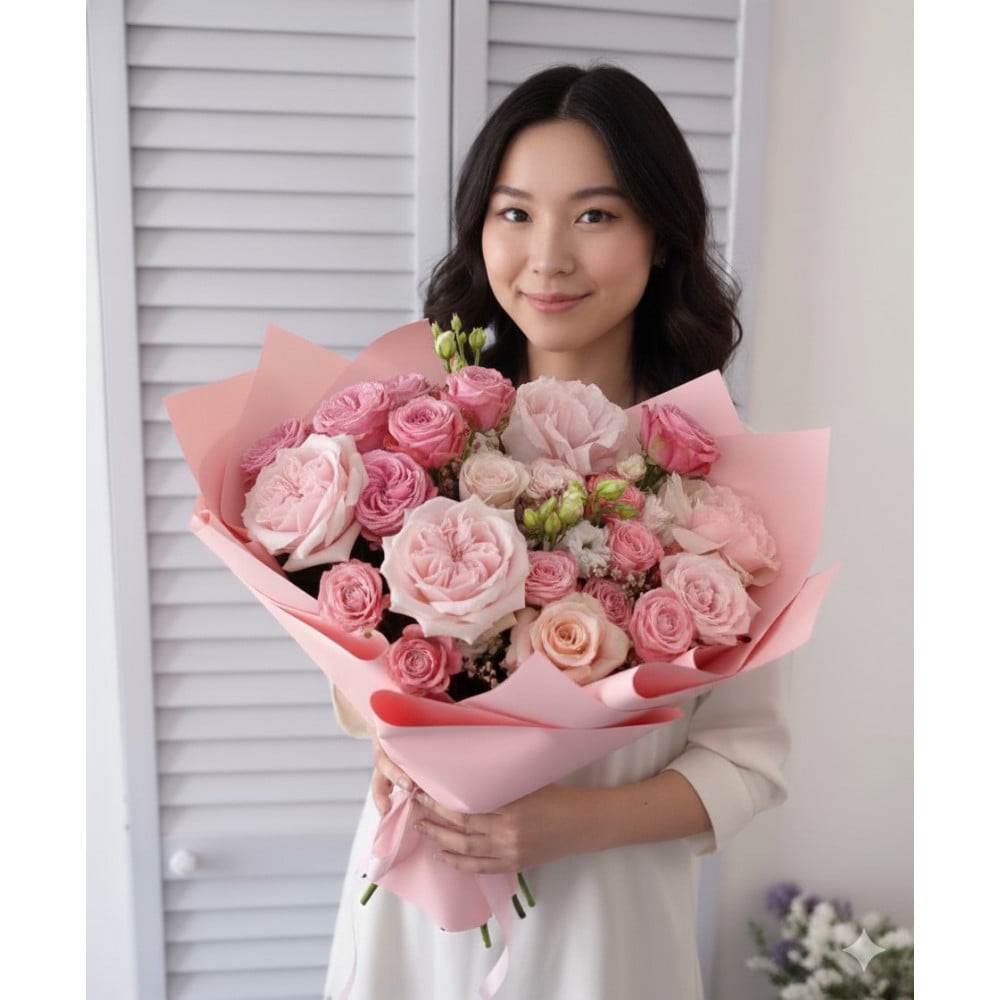 Дорогие клиенты, хотим Вам сообщить, что каждая наша композиция индивидуальна, и каждый наш флорист вкладывают душу в собранные им композиции, и букета в точь в точь не бывает. в зависимости от сезона и наличия цвета букет может отличаться до 30%